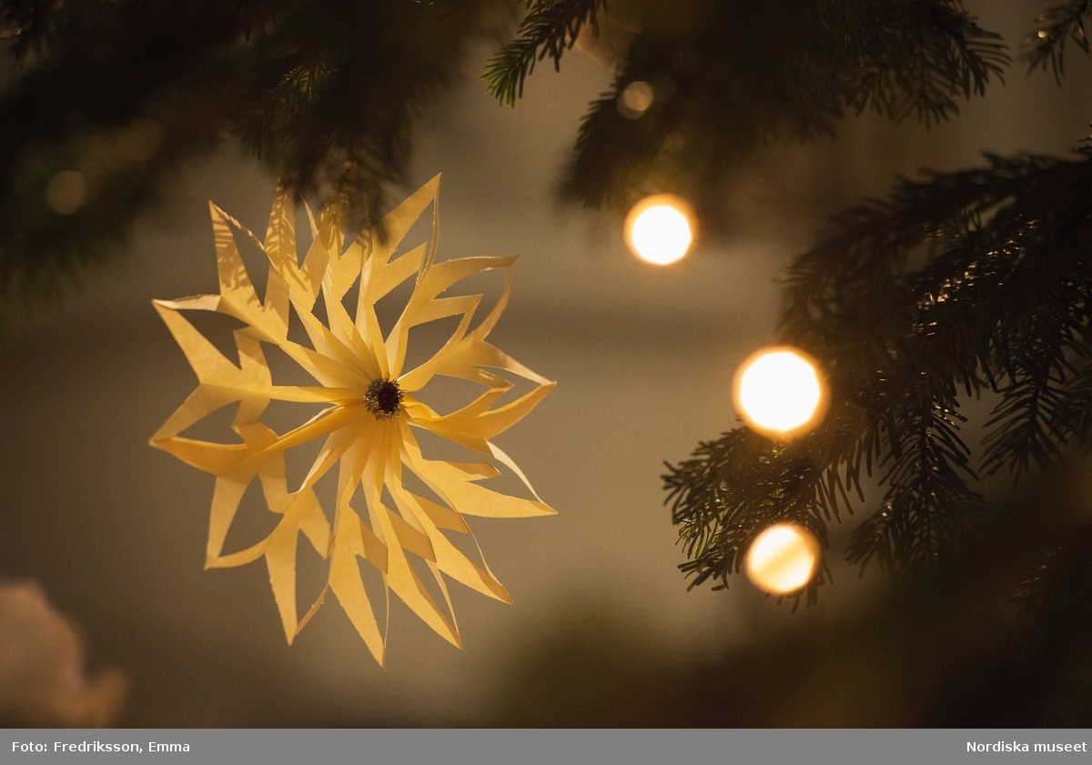 Jul, Julgran, Julgranspynt, Tradition, Sed, Seder, Julgranarna på Nordiska museet 2014, Nordiska museet. Julgransdekorationen på julgranen i stora hallen är formgivet av museets dekoratör/attributör Lena Nilsson. - Nordiska museet / DigitaltMuseum